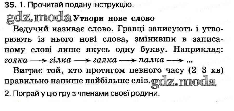 ГДЗ решение к заданию № 35 Украинский язык 3 класс рабочая тетрадь Вашуленко Освiта 2014 бесплатно на гдз.мода!