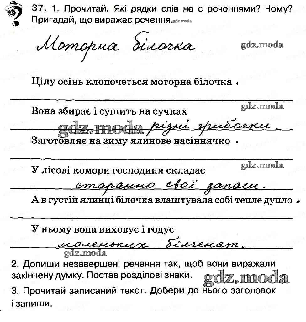 ГДЗ решение к заданию № 37 Украинский язык 3 класс рабочая тетрадь Вашуленко Освiта 2014 бесплатно на гдз.мода!