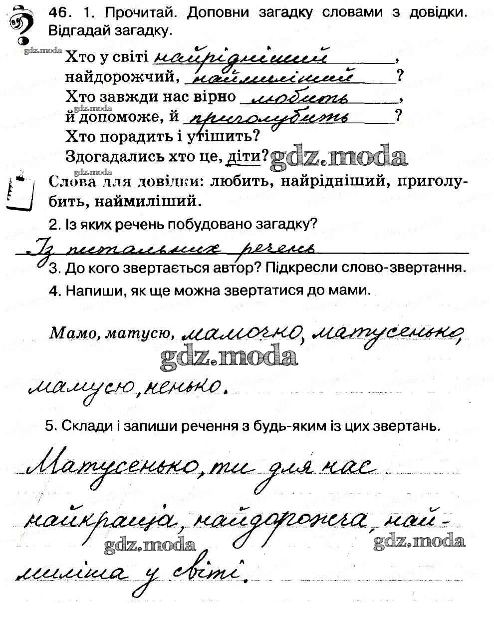 ГДЗ решение к заданию № 46 Украинский язык 3 класс рабочая тетрадь Вашуленко Освiта 2014 бесплатно на гдз.мода!
