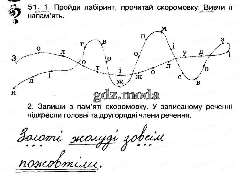 ГДЗ решение к заданию № 51 Украинский язык 3 класс рабочая тетрадь Вашуленко Освiта 2014 бесплатно на гдз.мода!