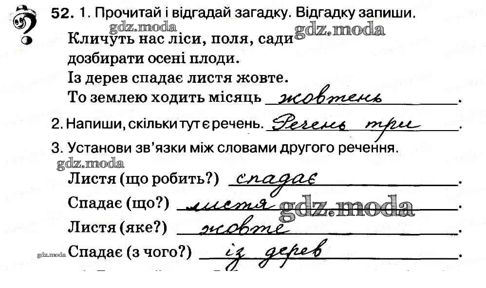 ГДЗ решение к заданию № 52 Украинский язык 3 класс рабочая тетрадь Вашуленко Освiта 2014 бесплатно на гдз.мода!