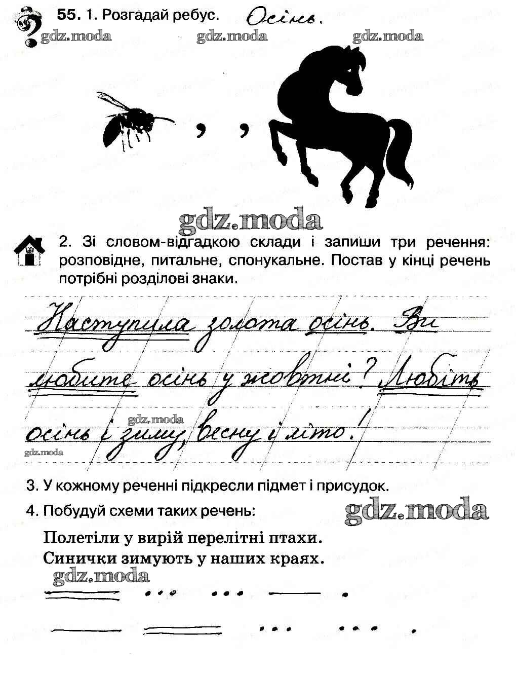 ГДЗ решение к заданию № 55 Украинский язык 3 класс рабочая тетрадь Вашуленко Освiта 2014 бесплатно на гдз.мода!