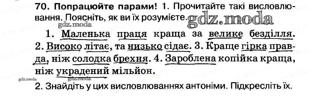 ГДЗ решение к заданию № 70 Украинский язык 3 класс рабочая тетрадь Вашуленко Освiта 2014 бесплатно на гдз.мода!