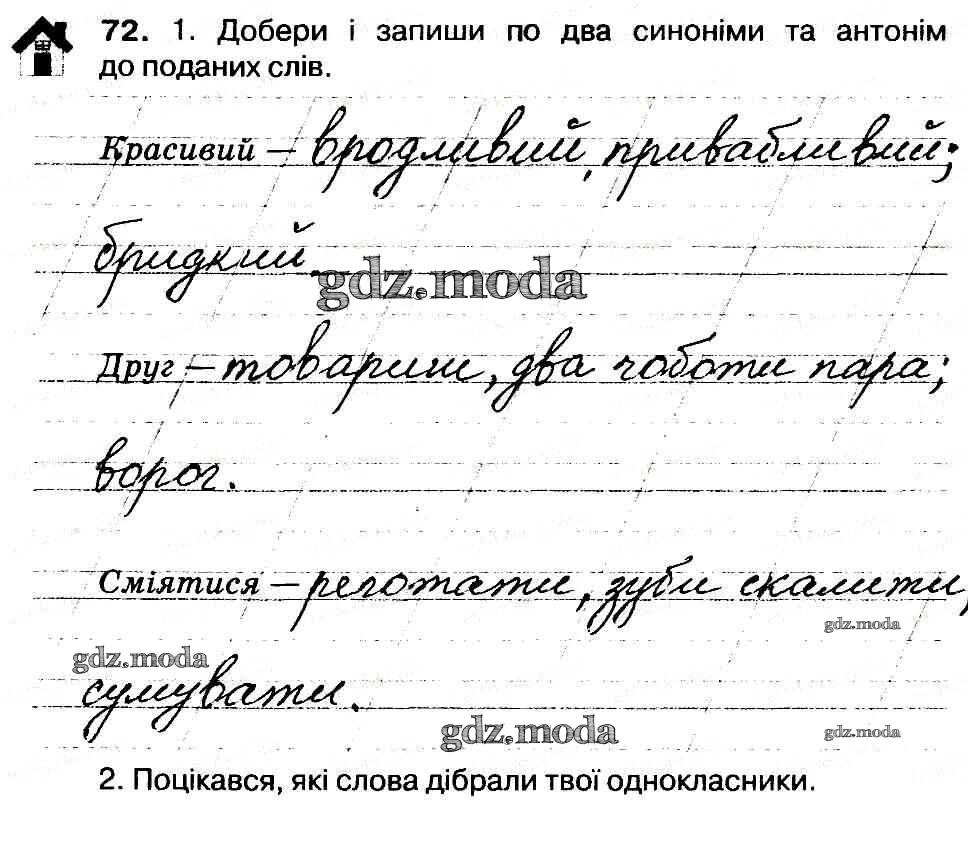 ГДЗ решение к заданию № 72 Украинский язык 3 класс рабочая тетрадь Вашуленко Освiта 2014 бесплатно на гдз.мода!