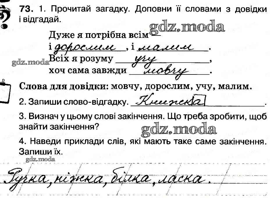 ГДЗ решение к заданию № 73 Украинский язык 3 класс рабочая тетрадь Вашуленко Освiта 2014 бесплатно на гдз.мода!