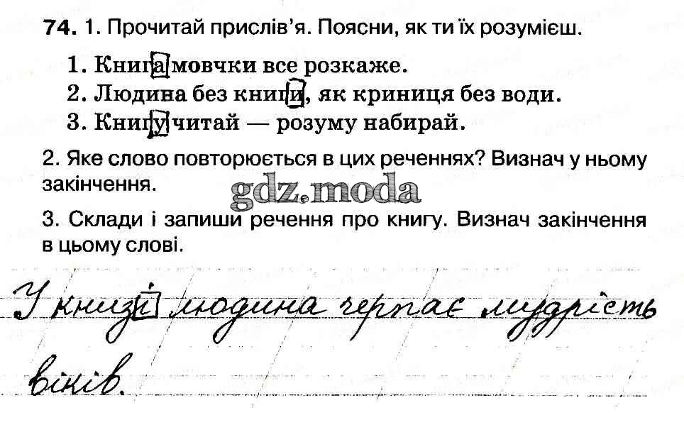 ГДЗ решение к заданию № 74 Украинский язык 3 класс рабочая тетрадь Вашуленко Освiта 2014 бесплатно на гдз.мода!