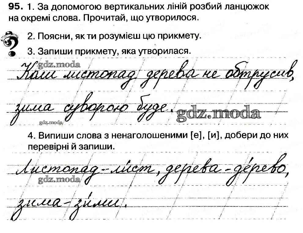 ГДЗ решение к заданию № 95 Украинский язык 3 класс рабочая тетрадь Вашуленко Освiта 2014 бесплатно на гдз.мода!