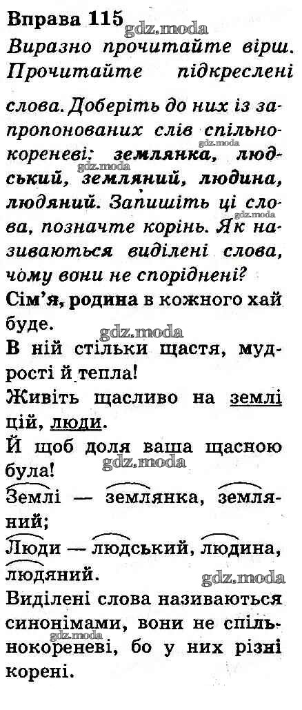 ГДЗ решение к заданию № 115 Украинский язык 3 класс Захарийчук Грамота 2013 бесплатно на гдз.мода!