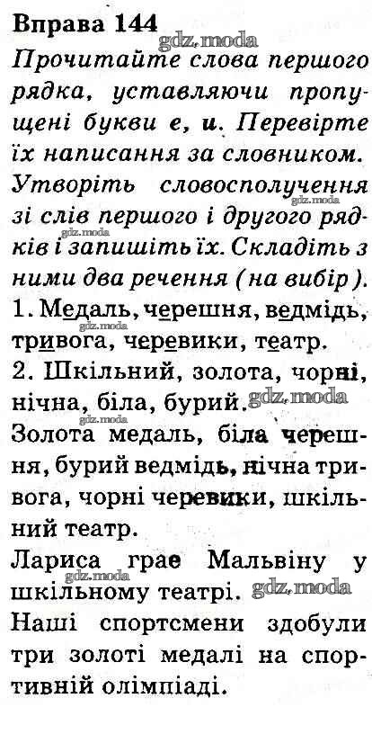 ГДЗ решение к заданию № 144 Украинский язык 3 класс Захарийчук Грамота 2013 бесплатно на гдз.мода!