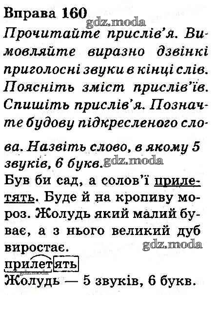 ГДЗ решение к заданию № 160 Украинский язык 3 класс Захарийчук Грамота 2013 бесплатно на гдз.мода!
