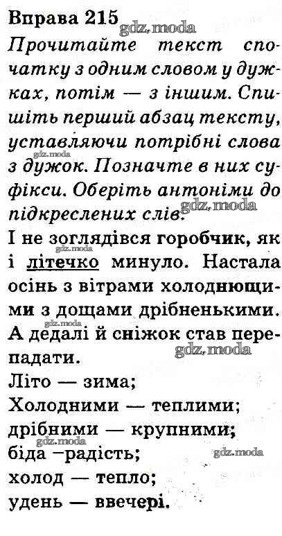 ГДЗ решение к заданию № 215 Украинский язык 3 класс Захарийчук Грамота 2013 бесплатно на гдз.мода!