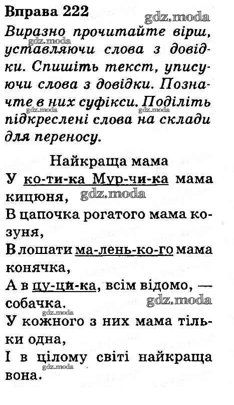 ГДЗ решение к заданию № 222 Украинский язык 3 класс Захарийчук Грамота 2013 бесплатно на гдз.мода!