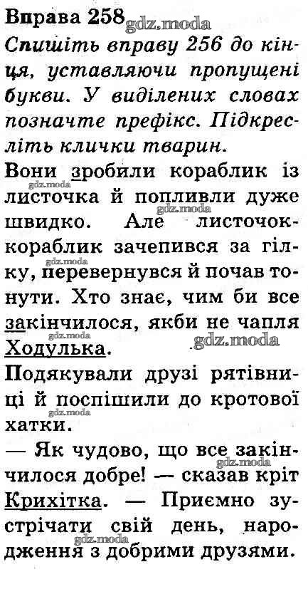 ГДЗ решение к заданию № 258 Украинский язык 3 класс Захарийчук Грамота 2013 бесплатно на гдз.мода!