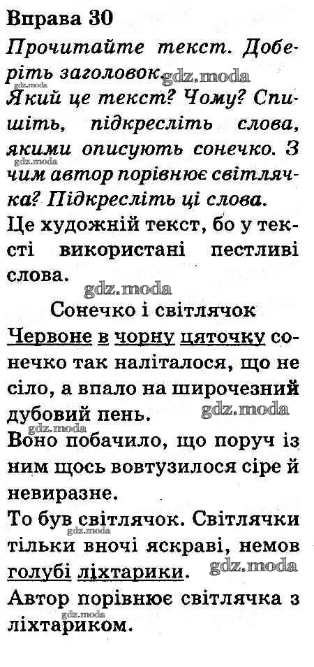 ГДЗ решение к заданию № 30 Украинский язык 3 класс Захарийчук Грамота 2013 бесплатно на гдз.мода!