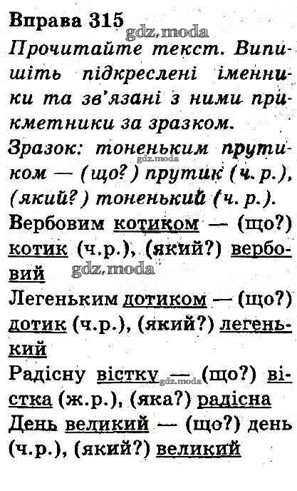 ГДЗ решение к заданию № 315 Украинский язык 3 класс Захарийчук Грамота 2013 бесплатно на гдз.мода!