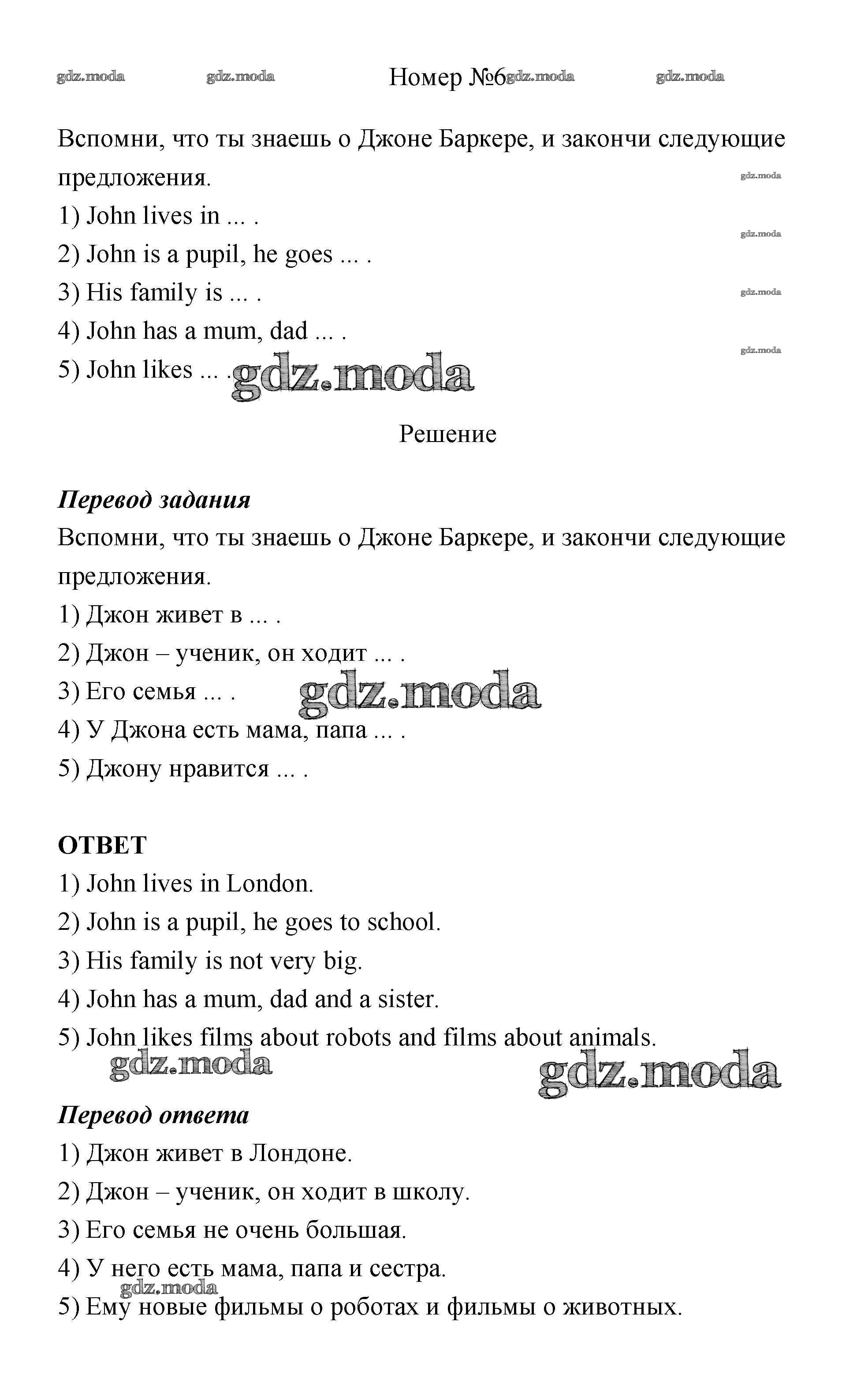 ГДЗ решение к заданию № 6 Английский язык 4 класс Афанасьева Rainbow English (в 2х частях) Дрофа 2016 Часть 1, Часть 2 ФГОС бесплатно на гдз.мода!