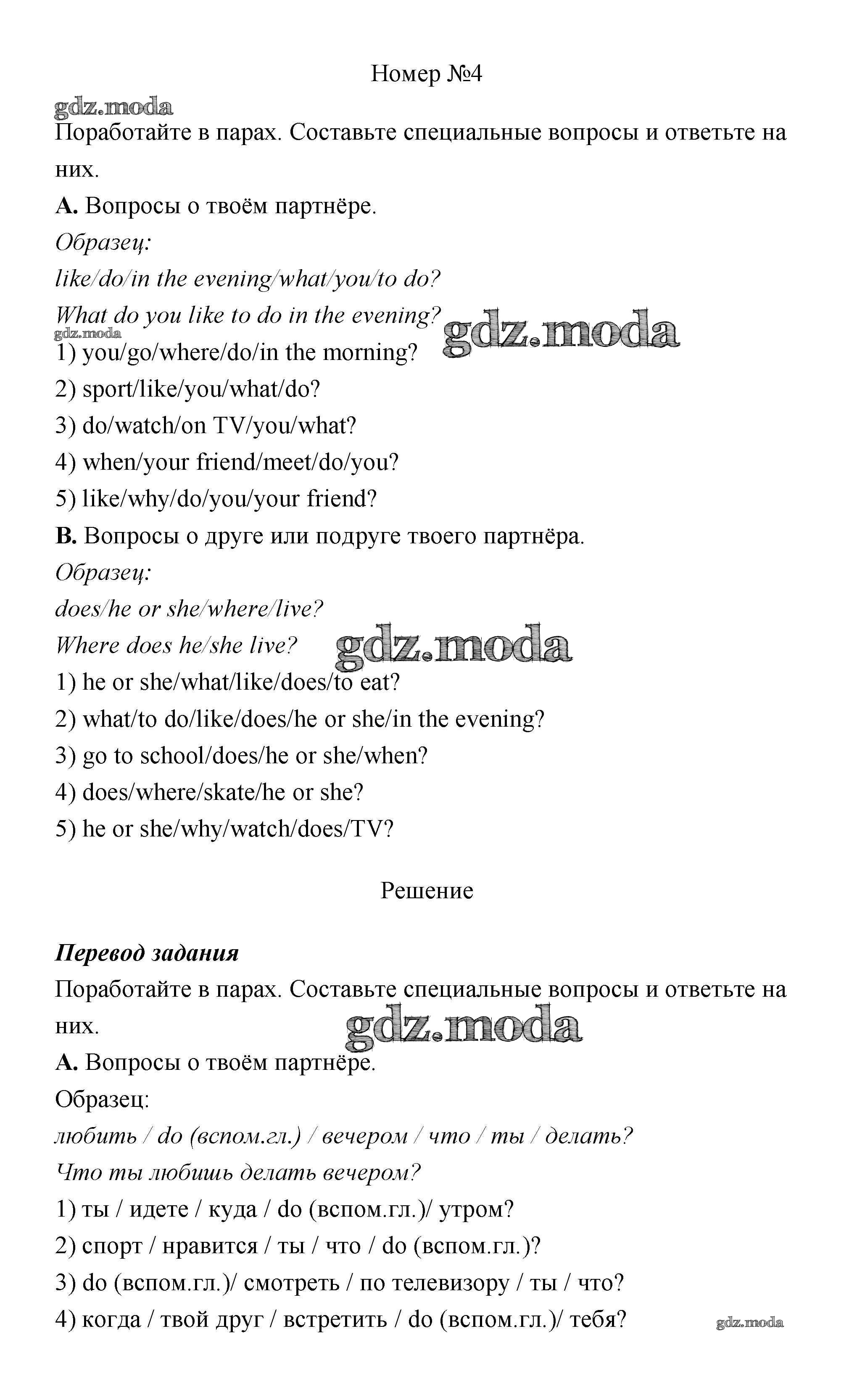 ГДЗ решение к заданию № 4 Английский язык 4 класс Афанасьева Rainbow English (в 2х частях) Дрофа 2016 Часть 1, Часть 2 ФГОС бесплатно на гдз.мода!