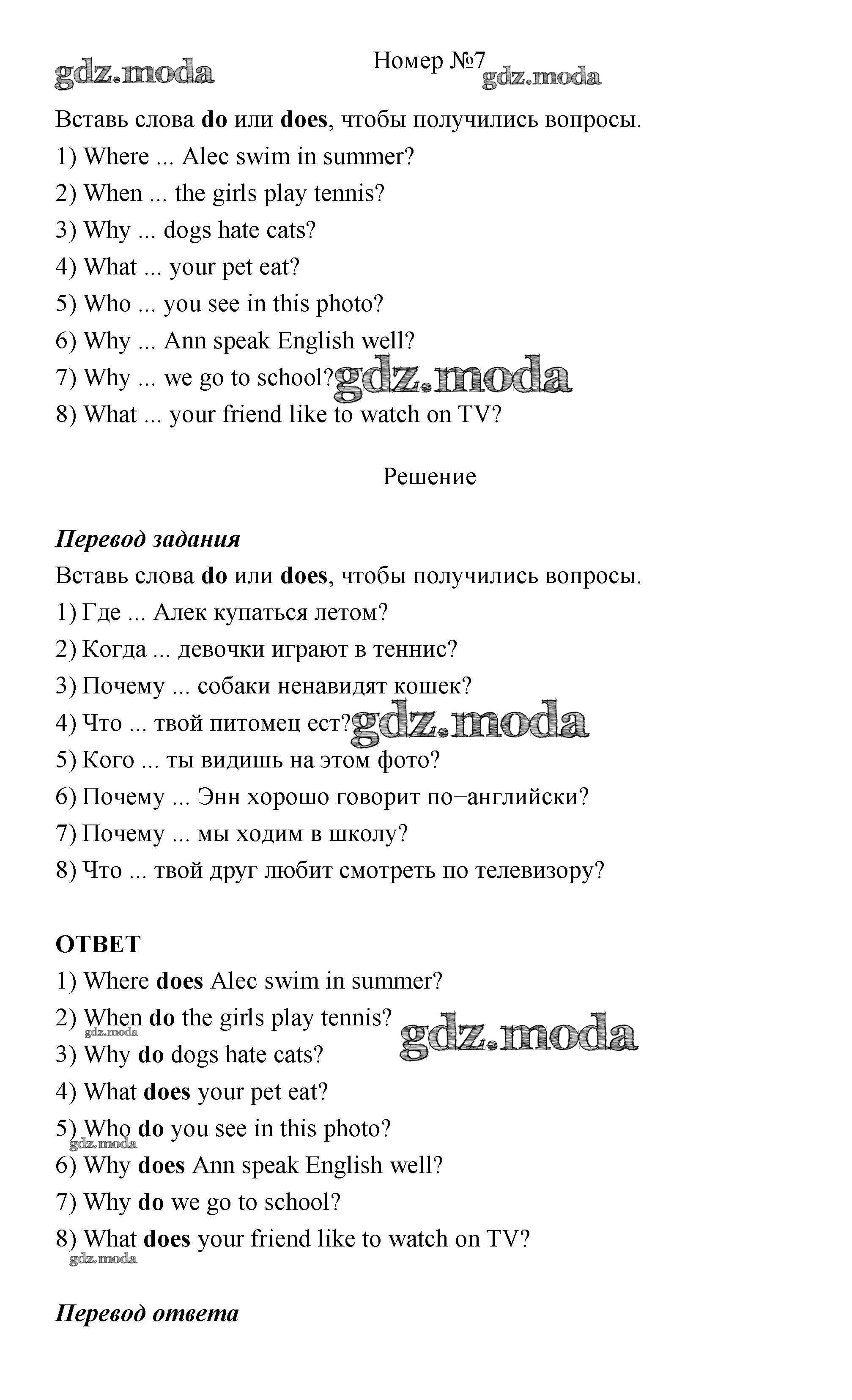ГДЗ решение к заданию № 7 Английский язык 4 класс Афанасьева Rainbow English (в 2х частях) Дрофа 2016 Часть 1, Часть 2 ФГОС бесплатно на гдз.мода!