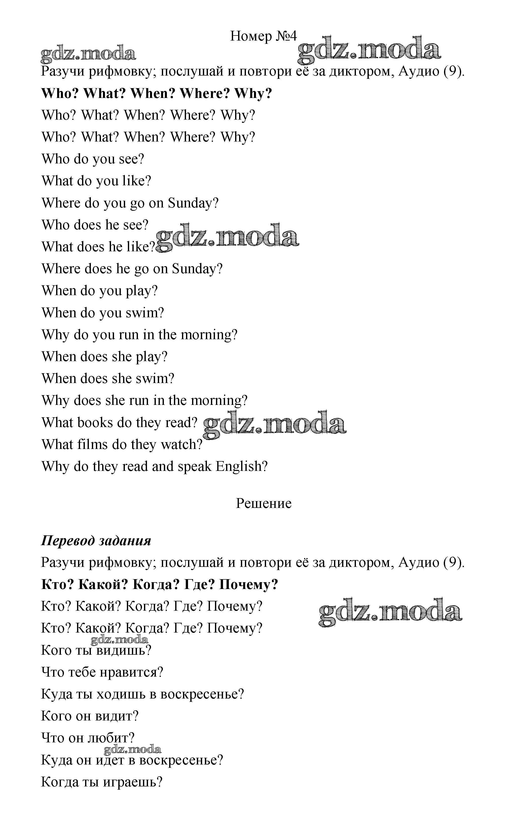 ГДЗ решение к заданию № 4 Английский язык 4 класс Афанасьева Rainbow English (в 2х частях) Дрофа 2016 Часть 1, Часть 2 ФГОС бесплатно на гдз.мода!