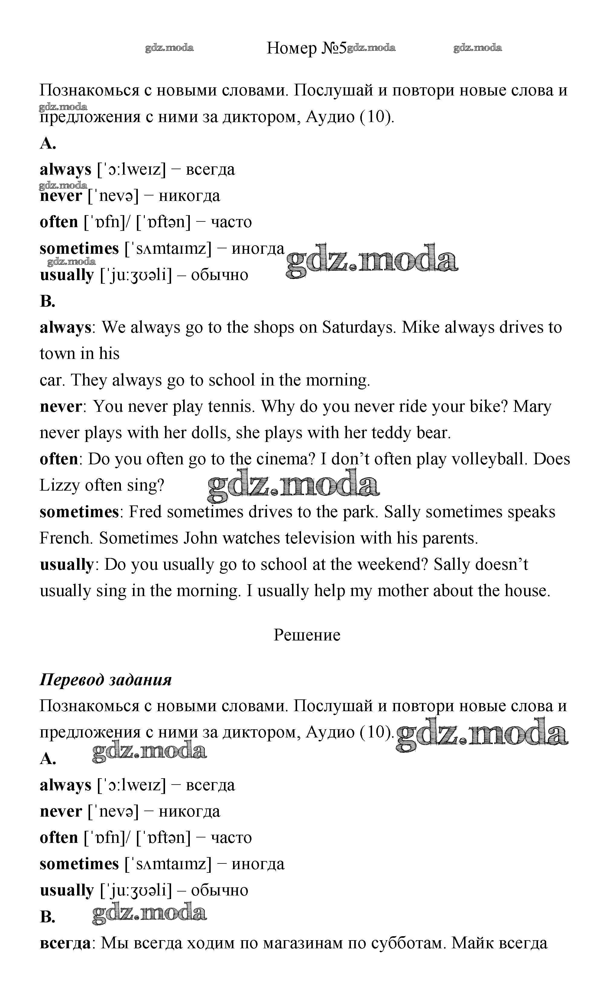 ГДЗ решение к заданию № 5 Английский язык 4 класс Афанасьева Rainbow English (в 2х частях) Дрофа 2016 Часть 1, Часть 2 ФГОС бесплатно на гдз.мода!