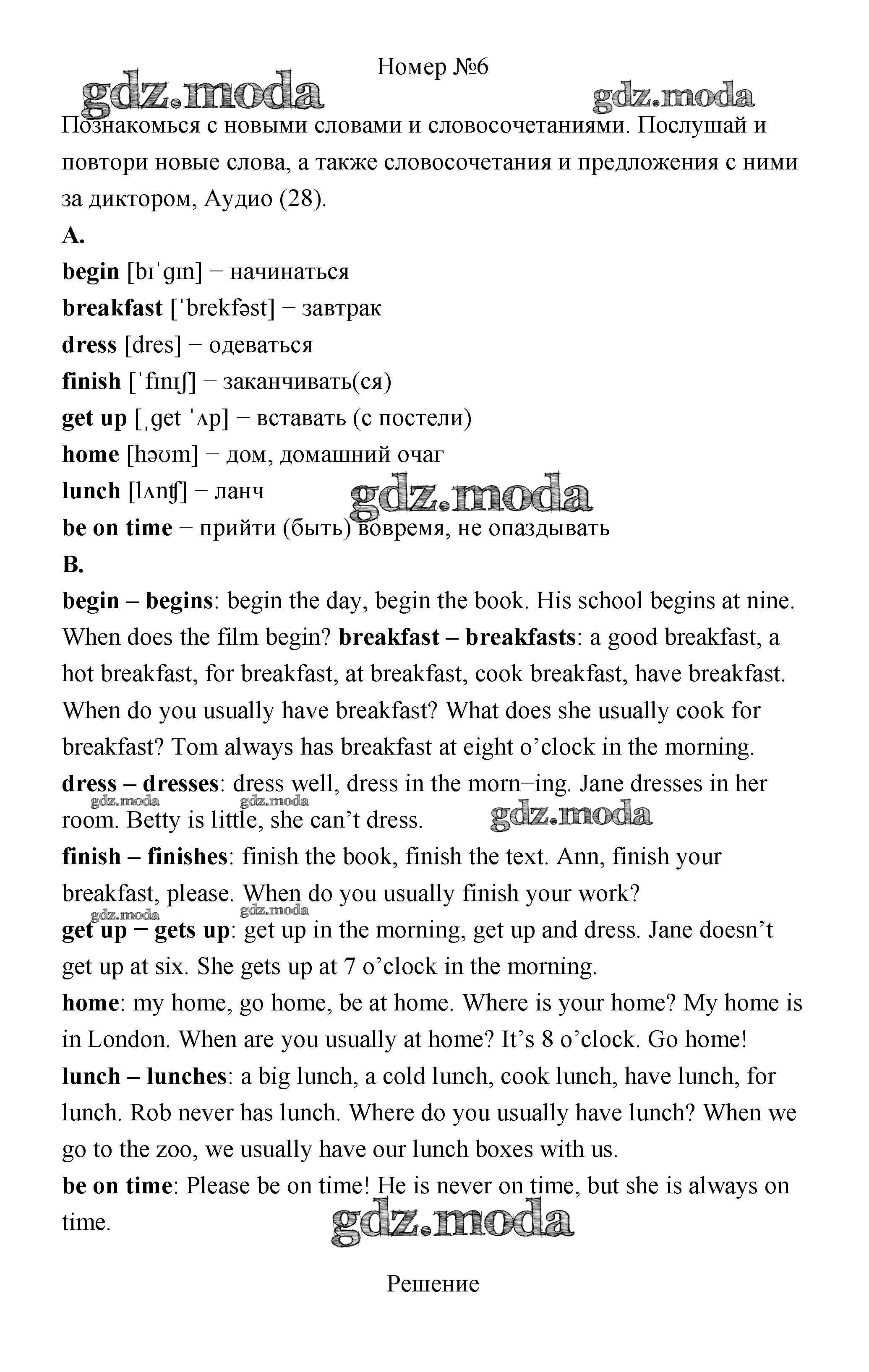 ГДЗ решение к заданию № 6 Английский язык 4 класс Афанасьева Rainbow English (в 2х частях) Дрофа 2016 Часть 1, Часть 2 ФГОС бесплатно на гдз.мода!