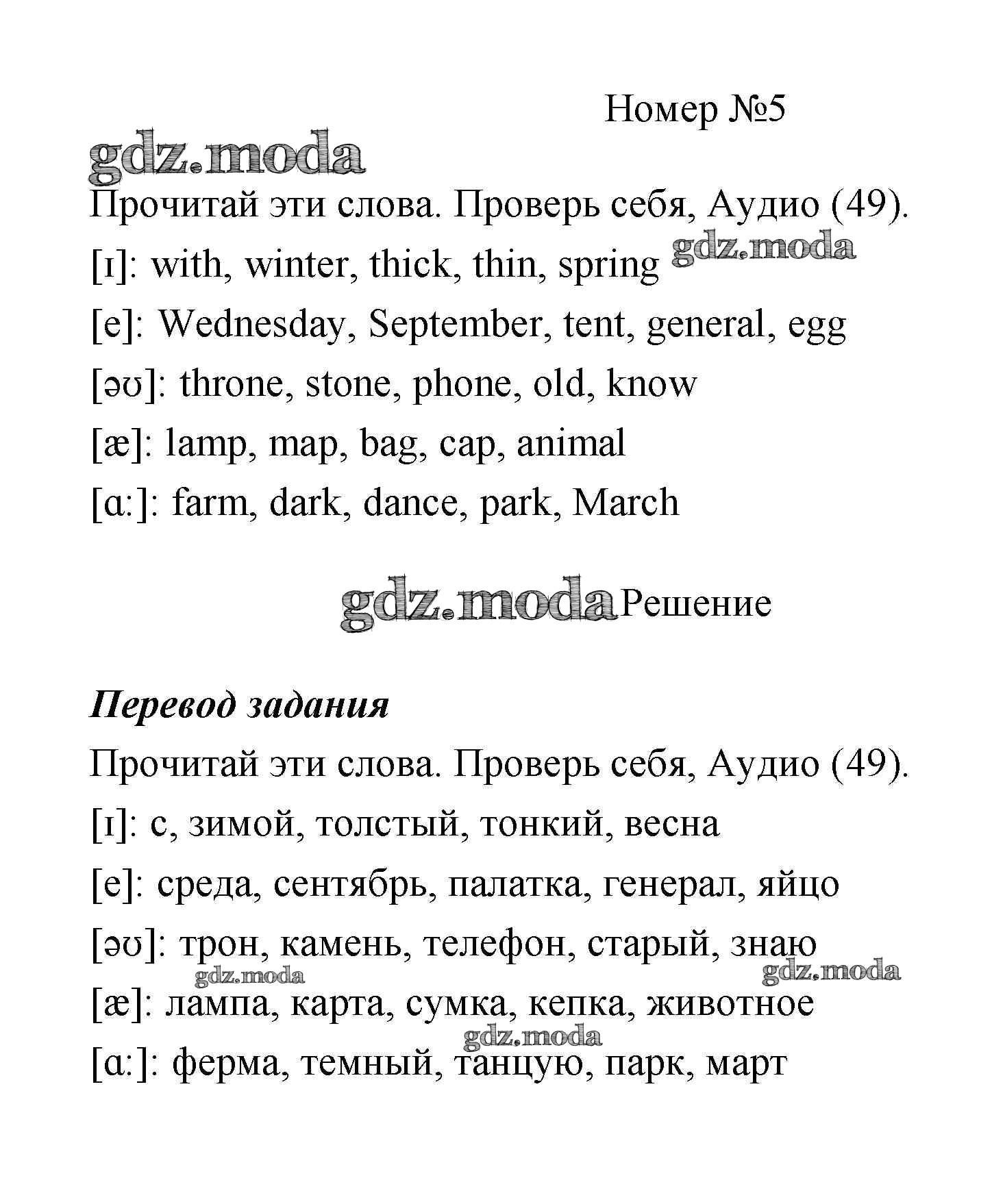 ГДЗ решение к заданию № 5 Английский язык 4 класс Афанасьева Rainbow English (в 2х частях) Дрофа 2016 Часть 1, Часть 2 ФГОС бесплатно на гдз.мода!