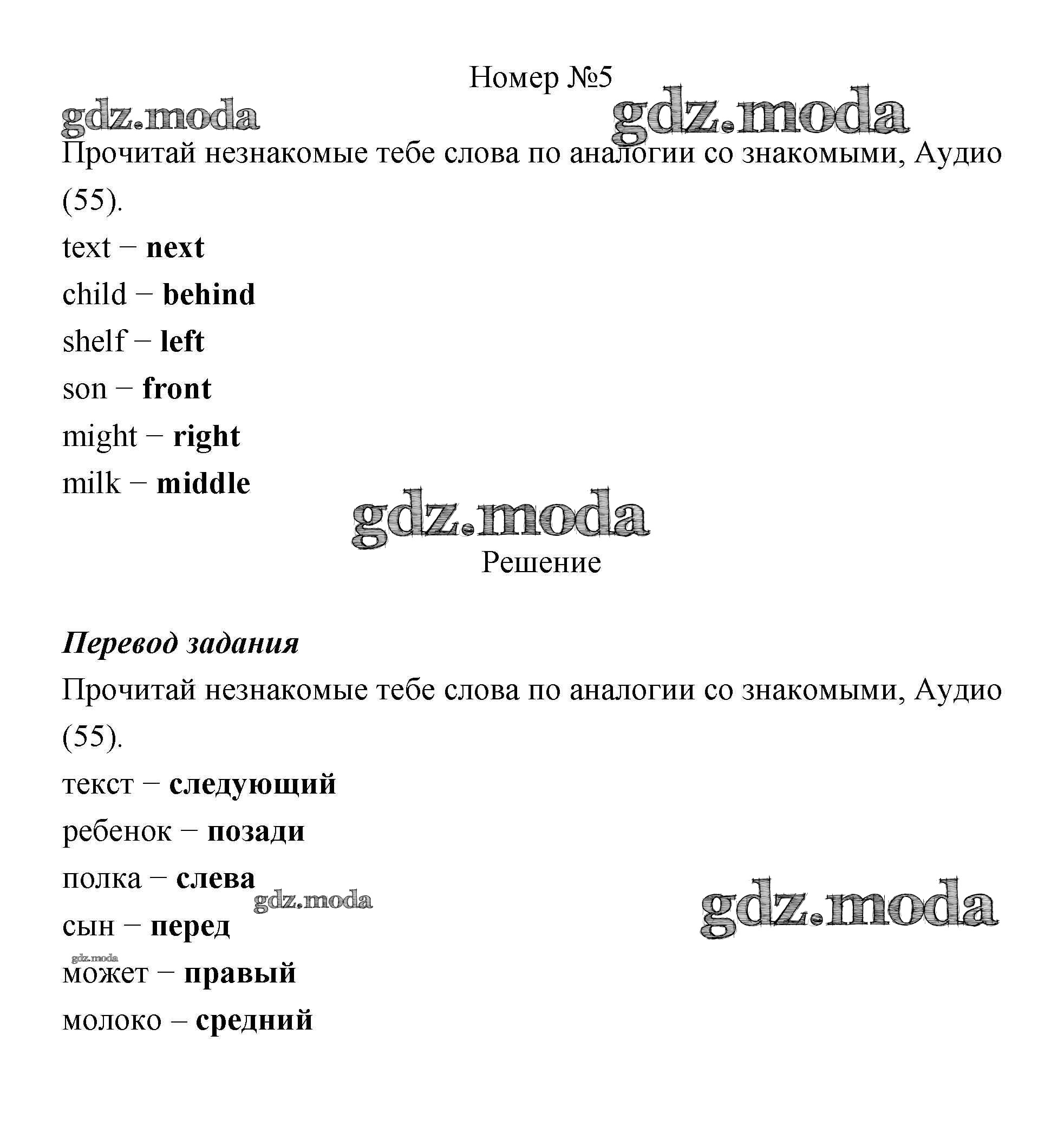 ГДЗ решение к заданию № 5 Английский язык 4 класс Афанасьева Rainbow English (в 2х частях) Дрофа 2016 Часть 1, Часть 2 ФГОС бесплатно на гдз.мода!