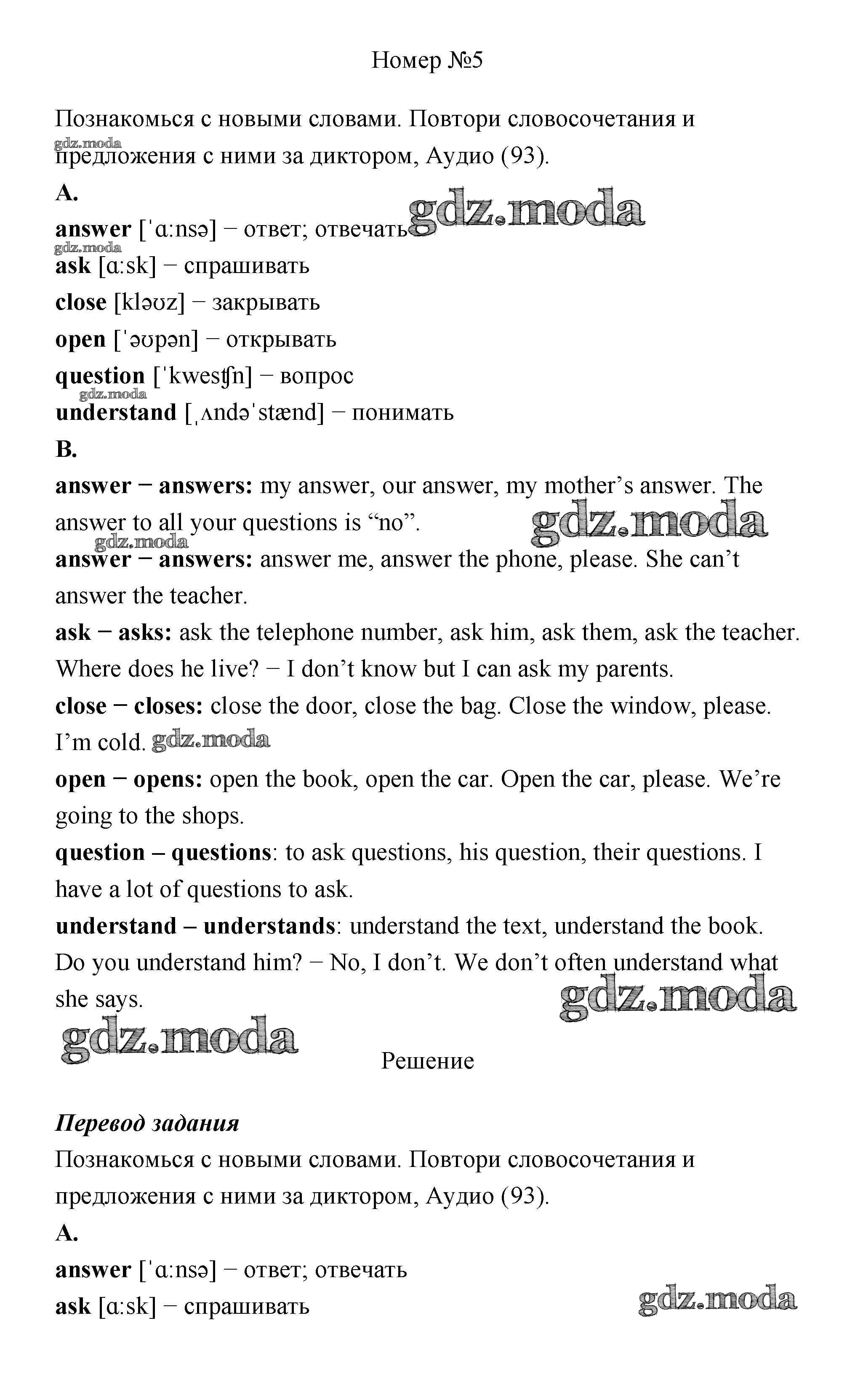 ГДЗ решение к заданию № 5 Английский язык 4 класс Афанасьева Rainbow English (в 2х частях) Дрофа 2016 Часть 1, Часть 2 ФГОС бесплатно на гдз.мода!