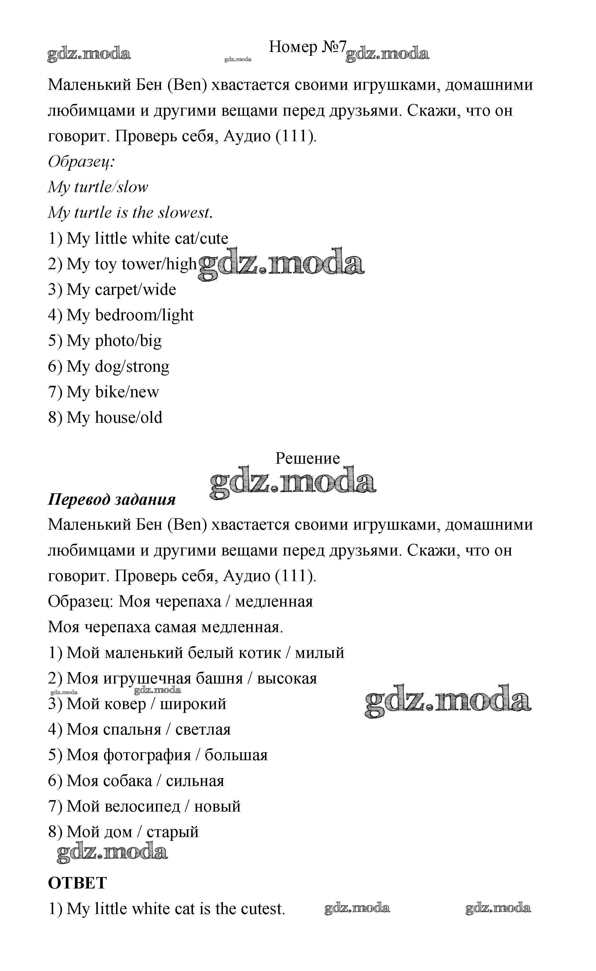 ГДЗ решение к заданию № 7 Английский язык 4 класс Афанасьева Rainbow English (в 2х частях) Дрофа 2016 Часть 1, Часть 2 ФГОС бесплатно на гдз.мода!