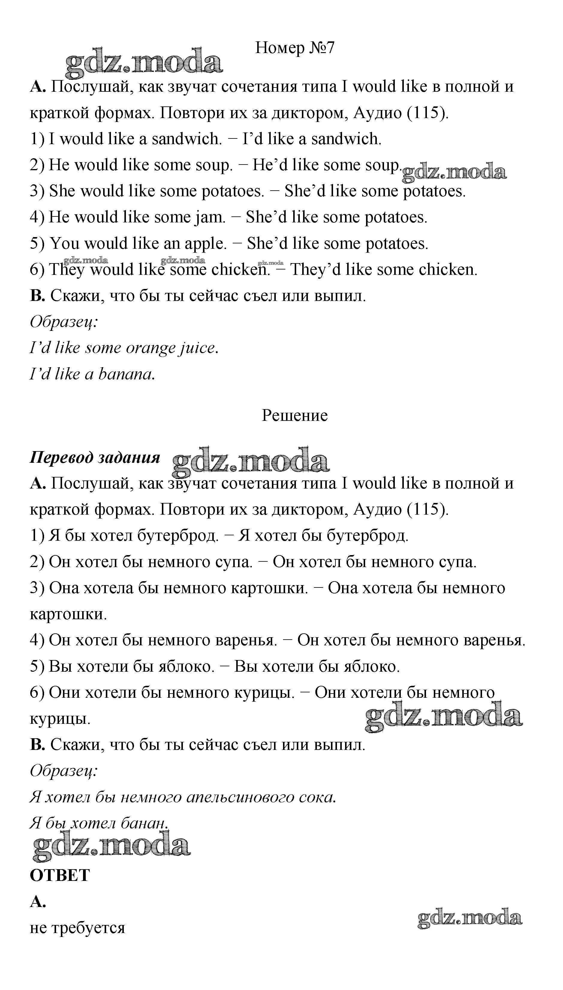 ГДЗ решение к заданию № 7 Английский язык 4 класс Афанасьева Rainbow English (в 2х частях) Дрофа 2016 Часть 1, Часть 2 ФГОС бесплатно на гдз.мода!