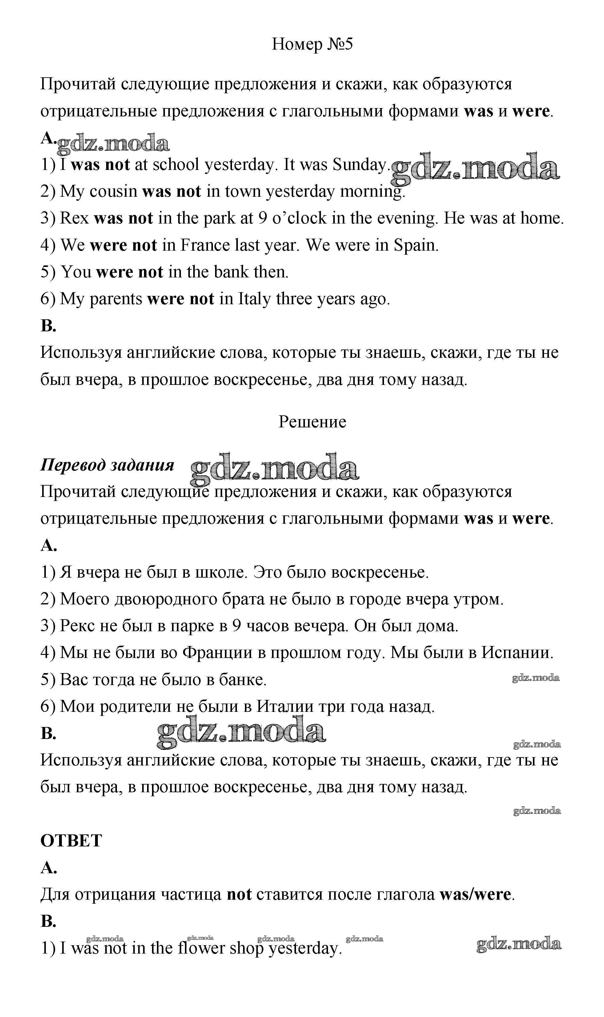 ГДЗ решение к заданию № 5 Английский язык 4 класс Афанасьева Rainbow English (в 2х частях) Дрофа 2016 Часть 1, Часть 2 ФГОС бесплатно на гдз.мода!