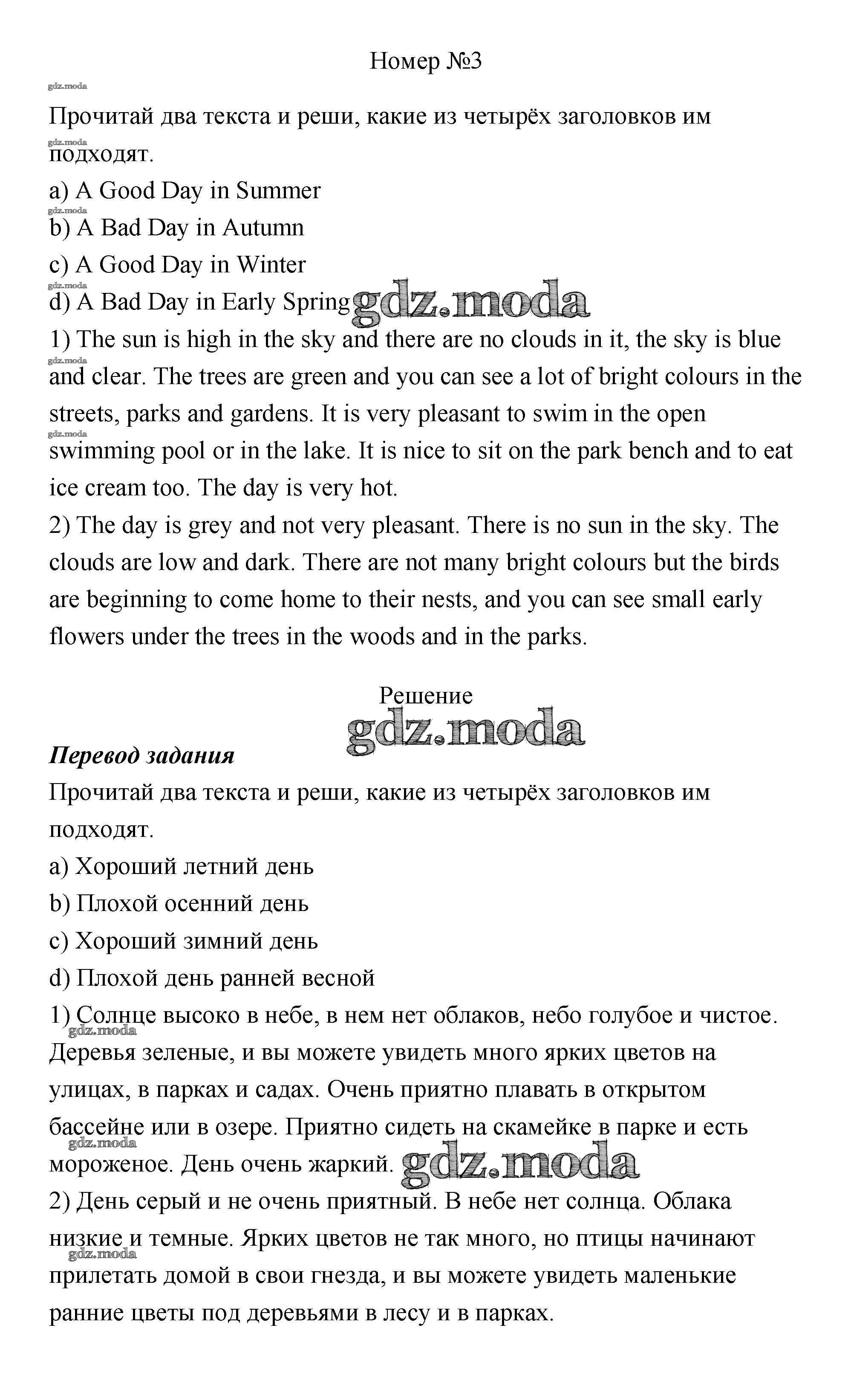 ГДЗ решение к заданию № 3 Английский язык 4 класс Афанасьева Rainbow English (в 2х частях) Дрофа 2016 Часть 1, Часть 2 ФГОС бесплатно на гдз.мода!