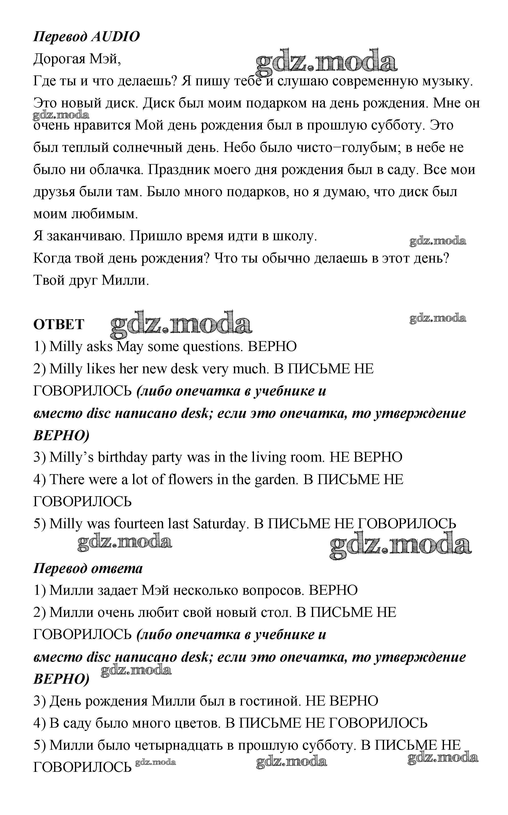 ОТВЕТ на задание № 1 Учебник по Английскому языку 4 класс Афанасьева Rainbow