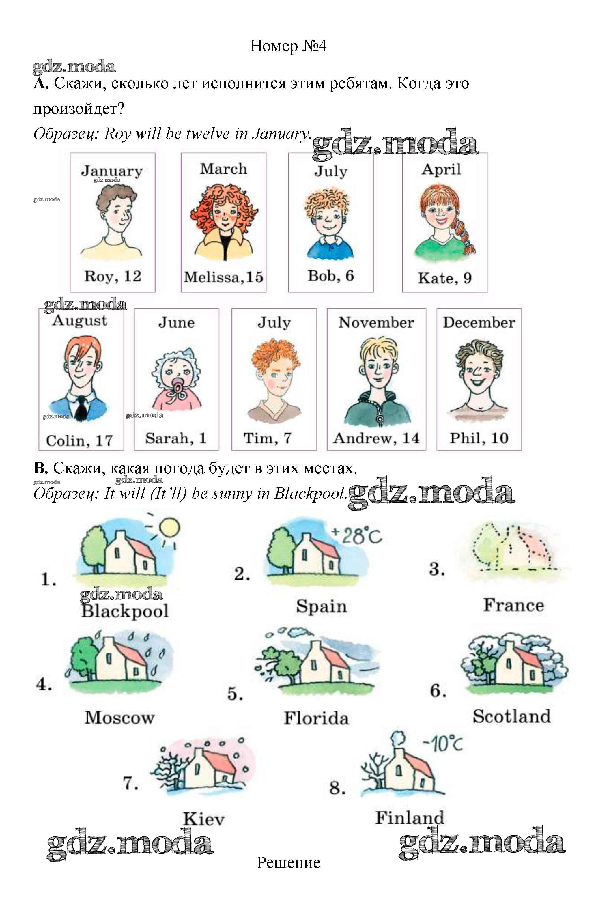 ГДЗ решение к заданию № 4 Английский язык 4 класс Афанасьева Rainbow English (в 2х частях) Дрофа 2016 Часть 1, Часть 2 ФГОС бесплатно на гдз.мода!
