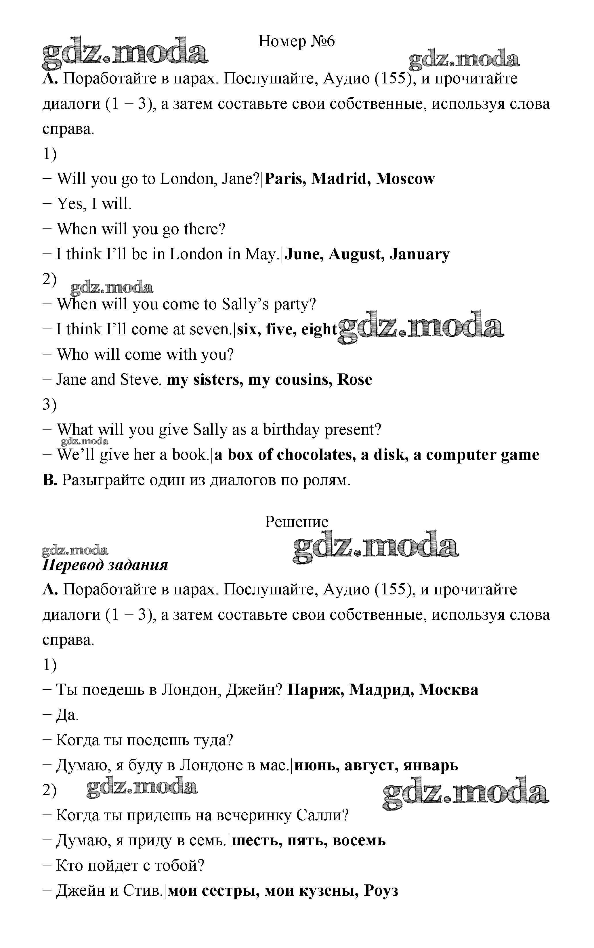 ГДЗ решение к заданию № 6 Английский язык 4 класс Афанасьева Rainbow English (в 2х частях) Дрофа 2016 Часть 1, Часть 2 ФГОС бесплатно на гдз.мода!