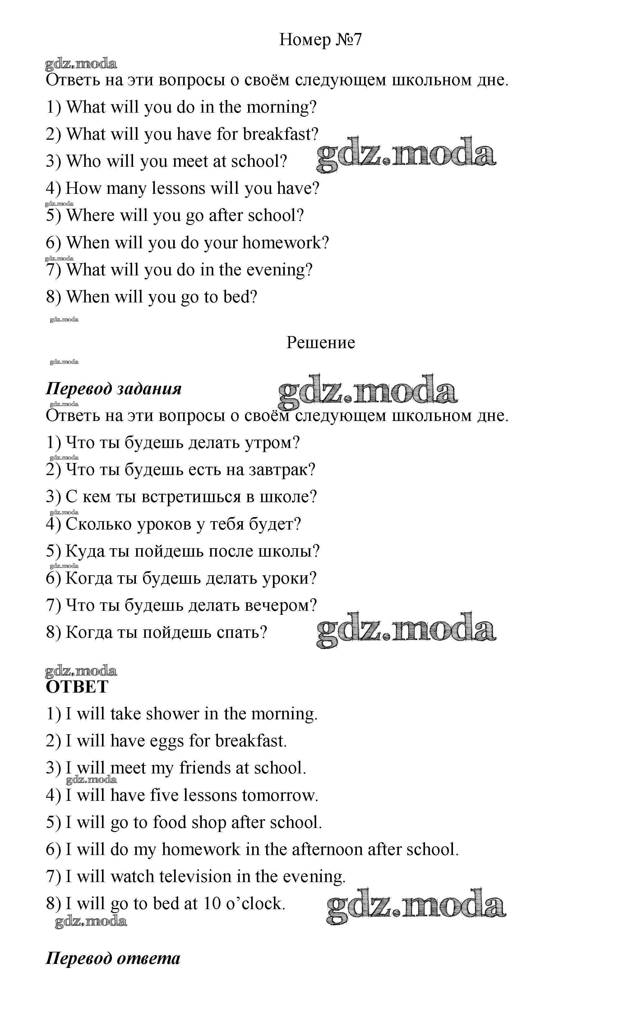 ГДЗ решение к заданию № 7 Английский язык 4 класс Афанасьева Rainbow English (в 2х частях) Дрофа 2016 Часть 1, Часть 2 ФГОС бесплатно на гдз.мода!