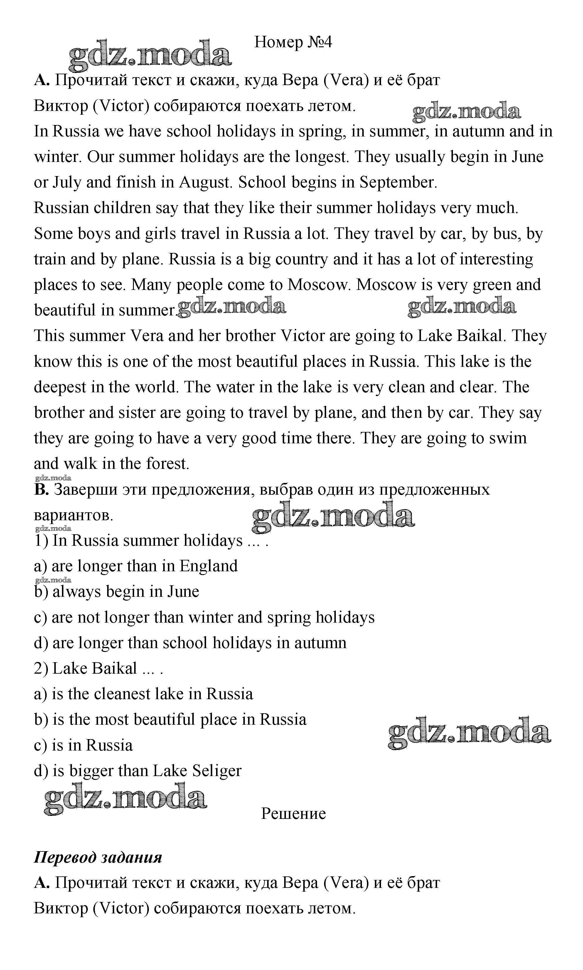 ГДЗ решение к заданию № 4 Английский язык 4 класс Афанасьева Rainbow English (в 2х частях) Дрофа 2016 Часть 1, Часть 2 ФГОС бесплатно на гдз.мода!