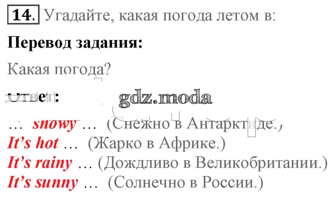 ОТВЕТ на задание № 14 Учебник по Английскому языку 4 класс Биболетова Enjoy English