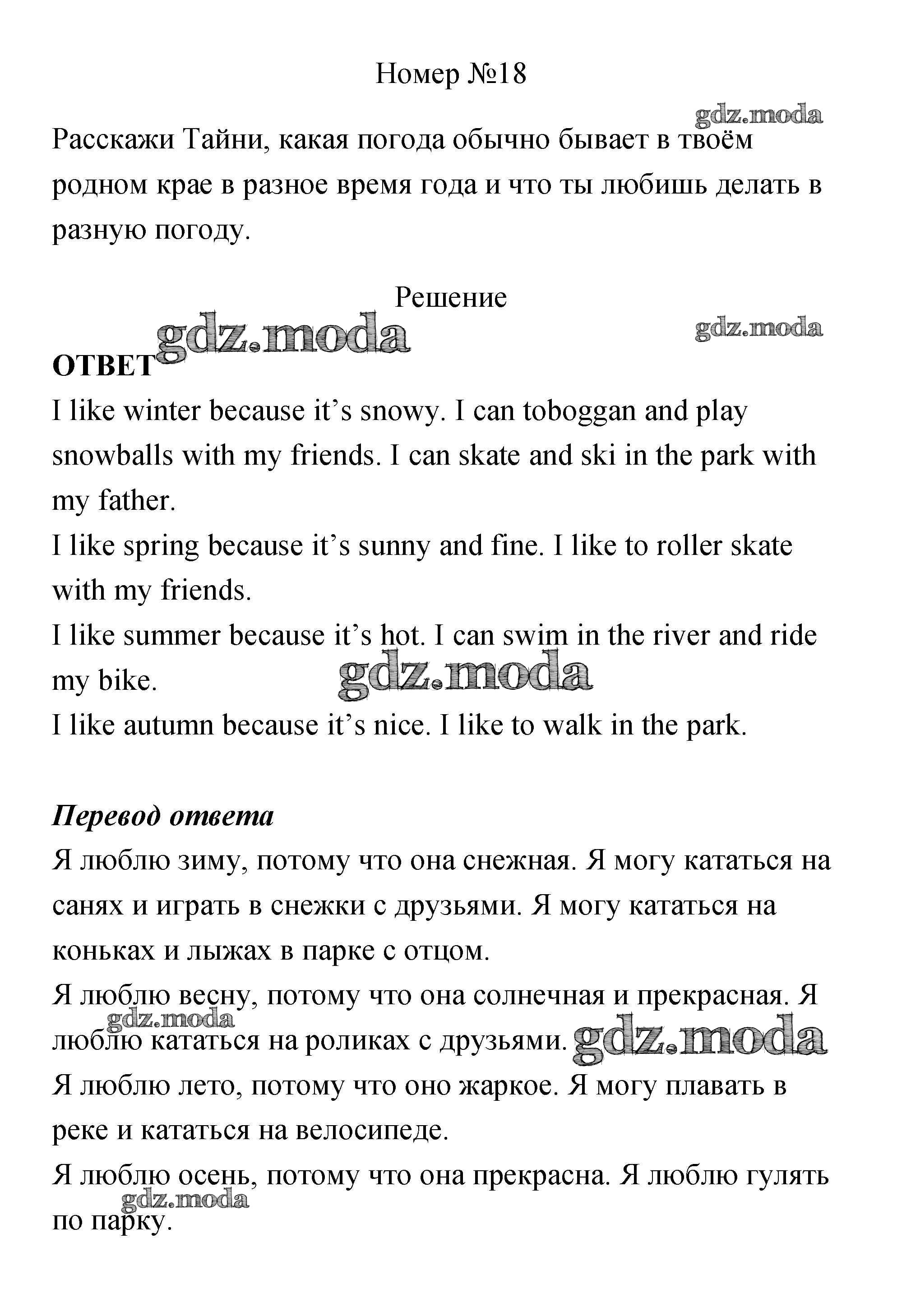 ОТВЕТ на задание № 18 Учебник по Английскому языку 4 класс Биболетова Enjoy English