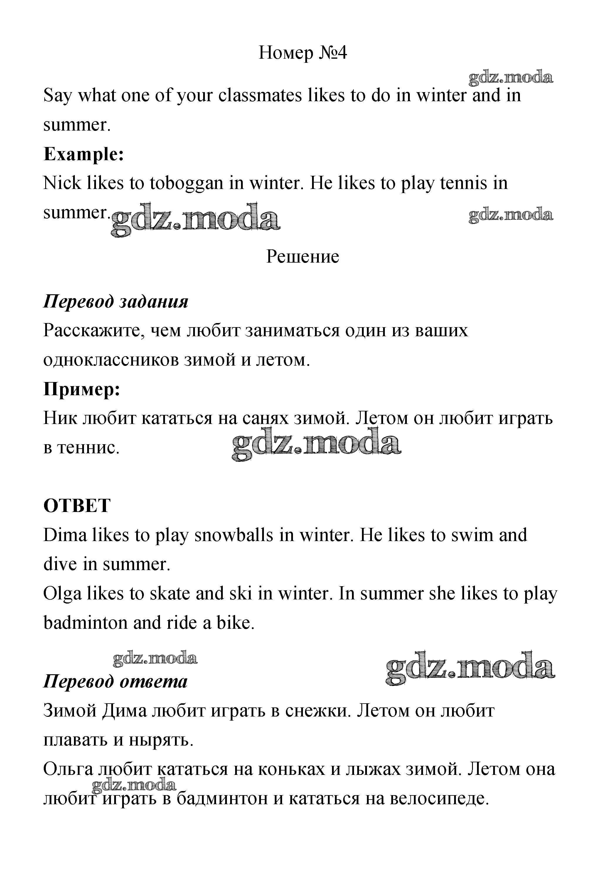 ОТВЕТ на задание № 4 Учебник по Английскому языку 4 класс Биболетова Enjoy English