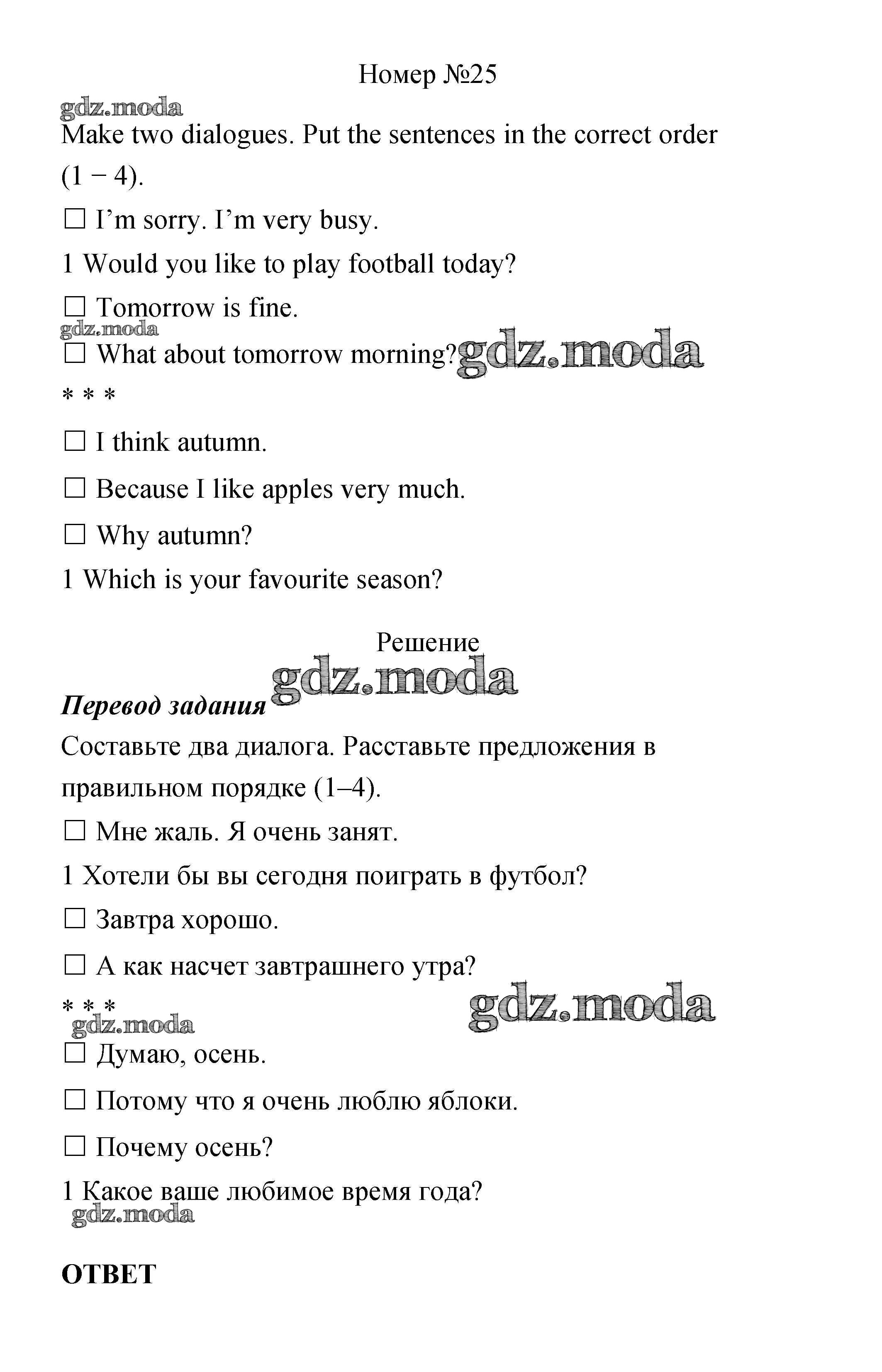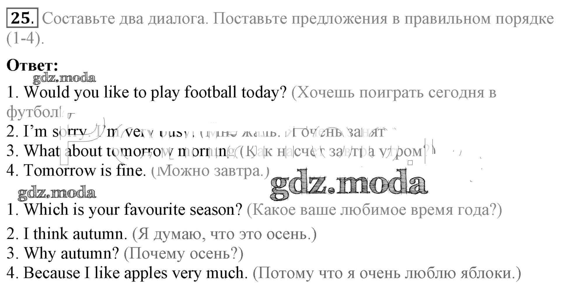 ОТВЕТ на задание № 25 Учебник по Английскому языку 4 класс Биболетова Enjoy English
