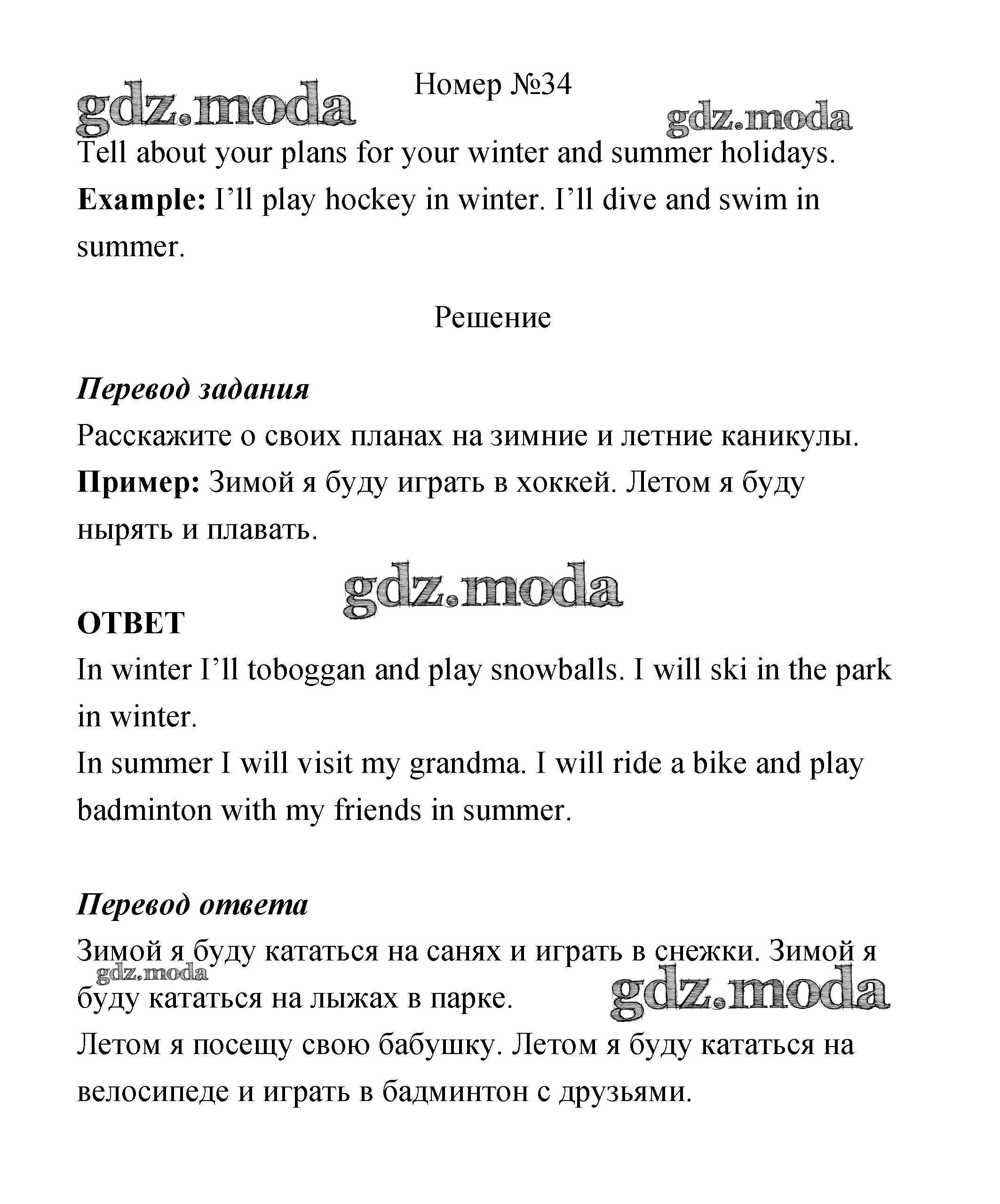 ОТВЕТ на задание № 34 Учебник по Английскому языку 4 класс Биболетова Enjoy English