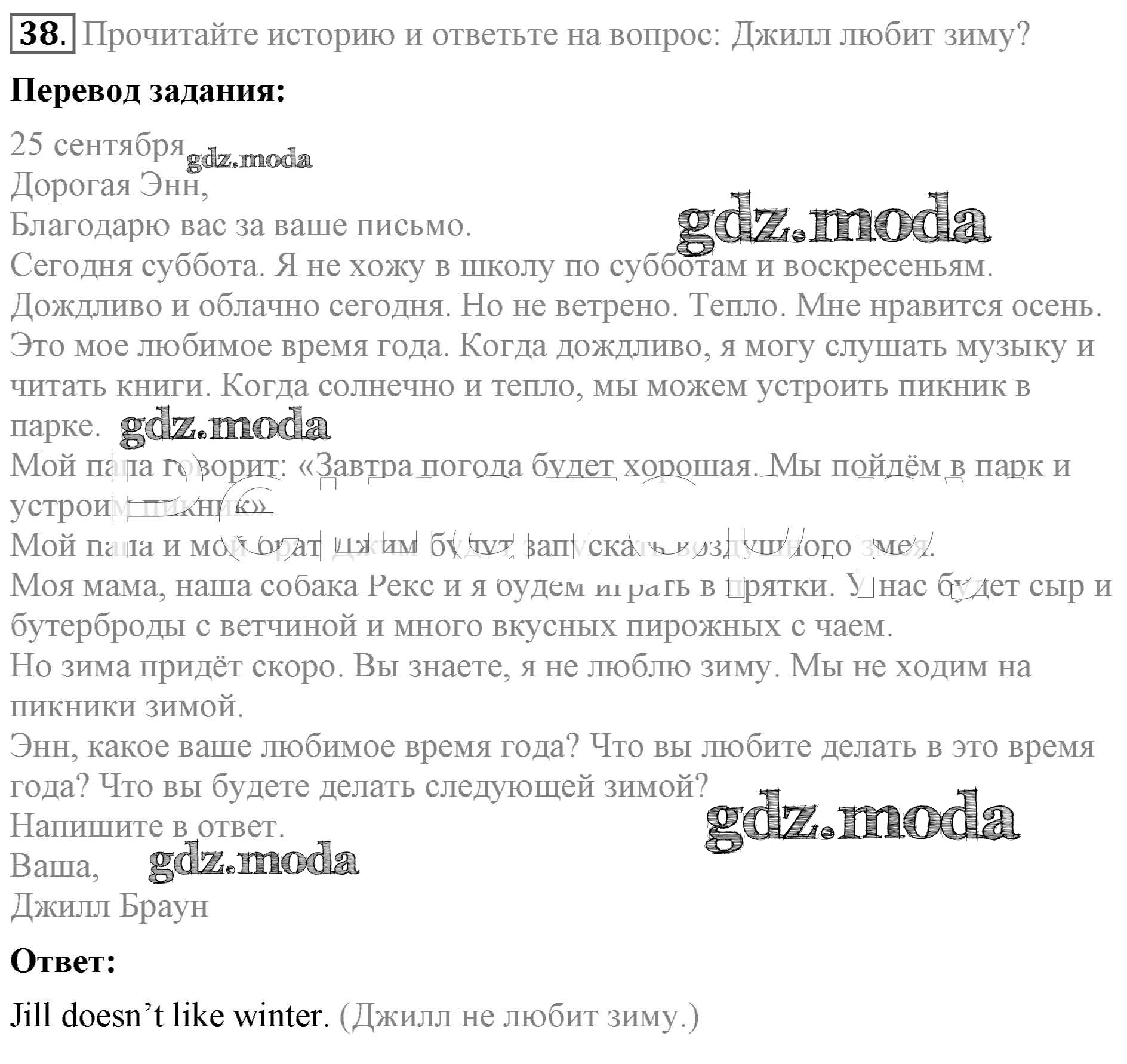 ОТВЕТ на задание № 38 Учебник по Английскому языку 4 класс Биболетова Enjoy English