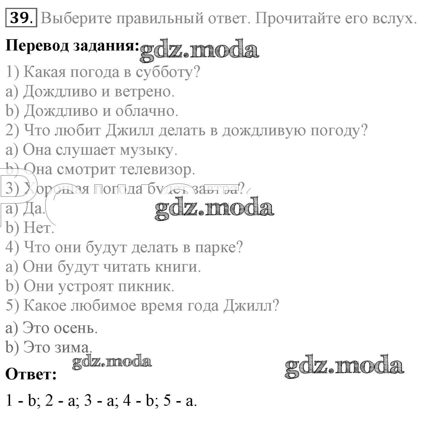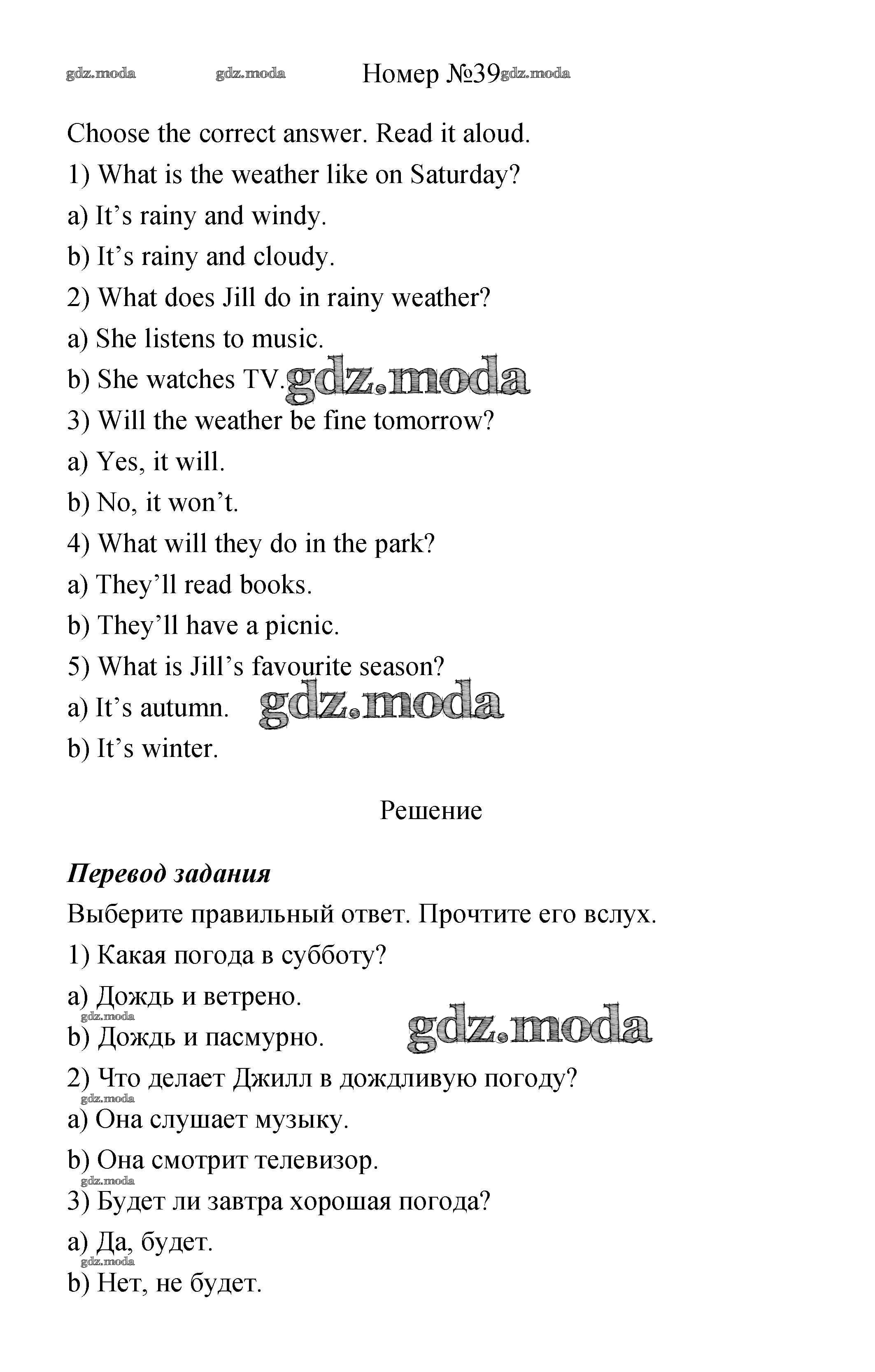 ОТВЕТ на задание № 39 Учебник по Английскому языку 4 класс Биболетова Enjoy English