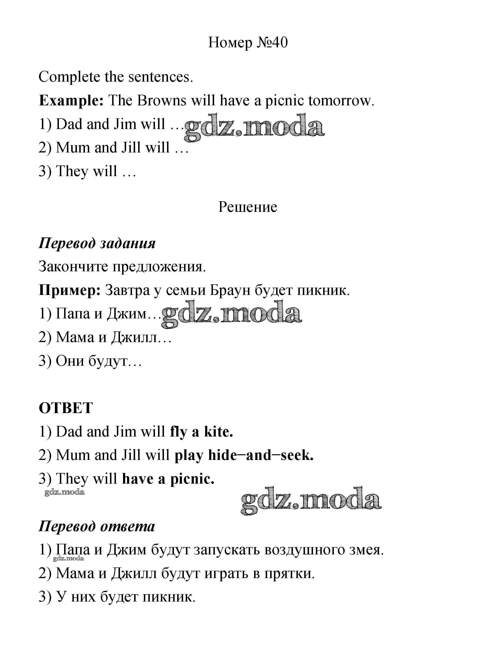 ОТВЕТ на задание № 40 Учебник по Английскому языку 4 класс Биболетова Enjoy English