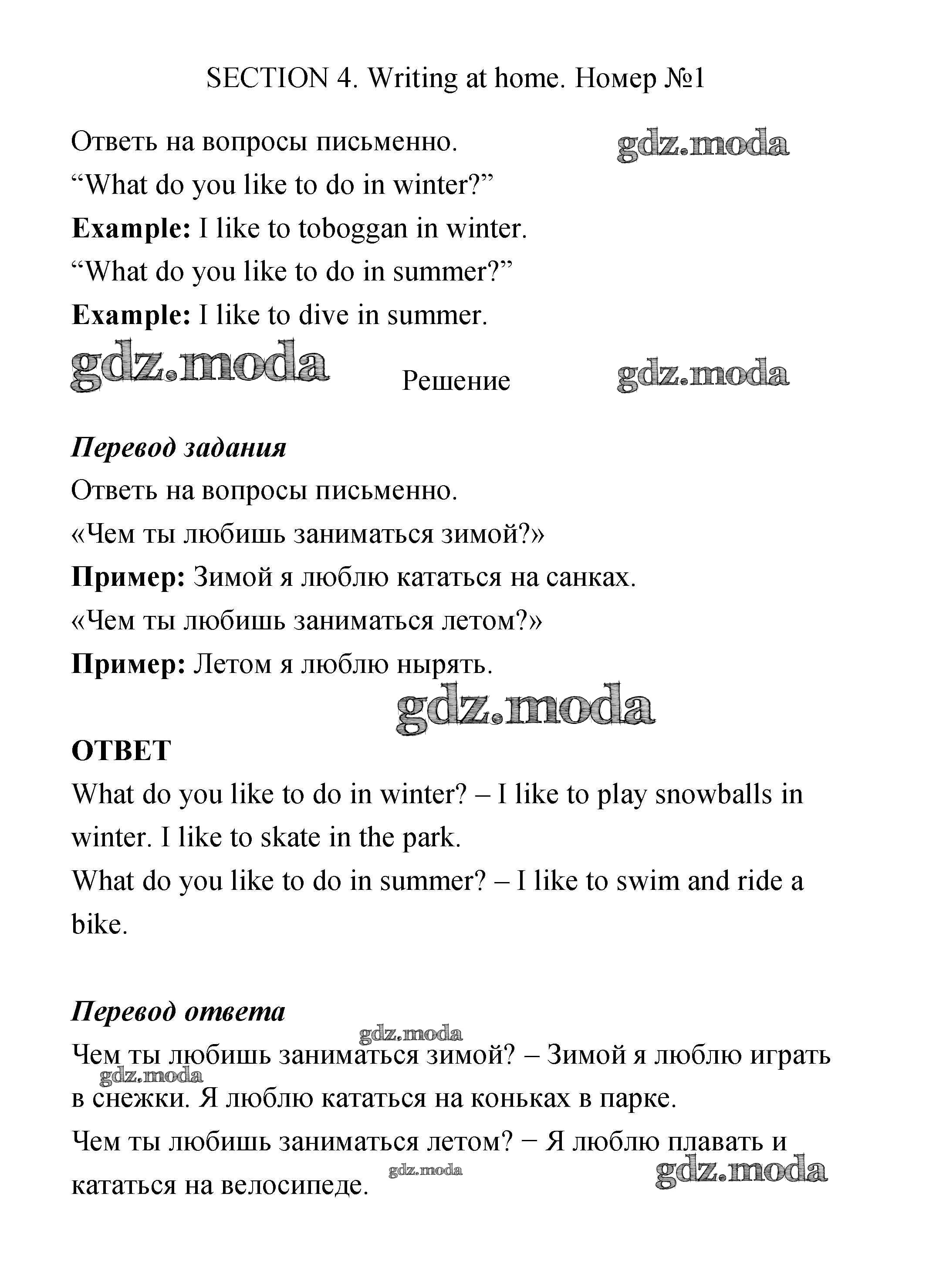 ОТВЕТ на задание № 1 Учебник по Английскому языку 4 класс Биболетова Enjoy English