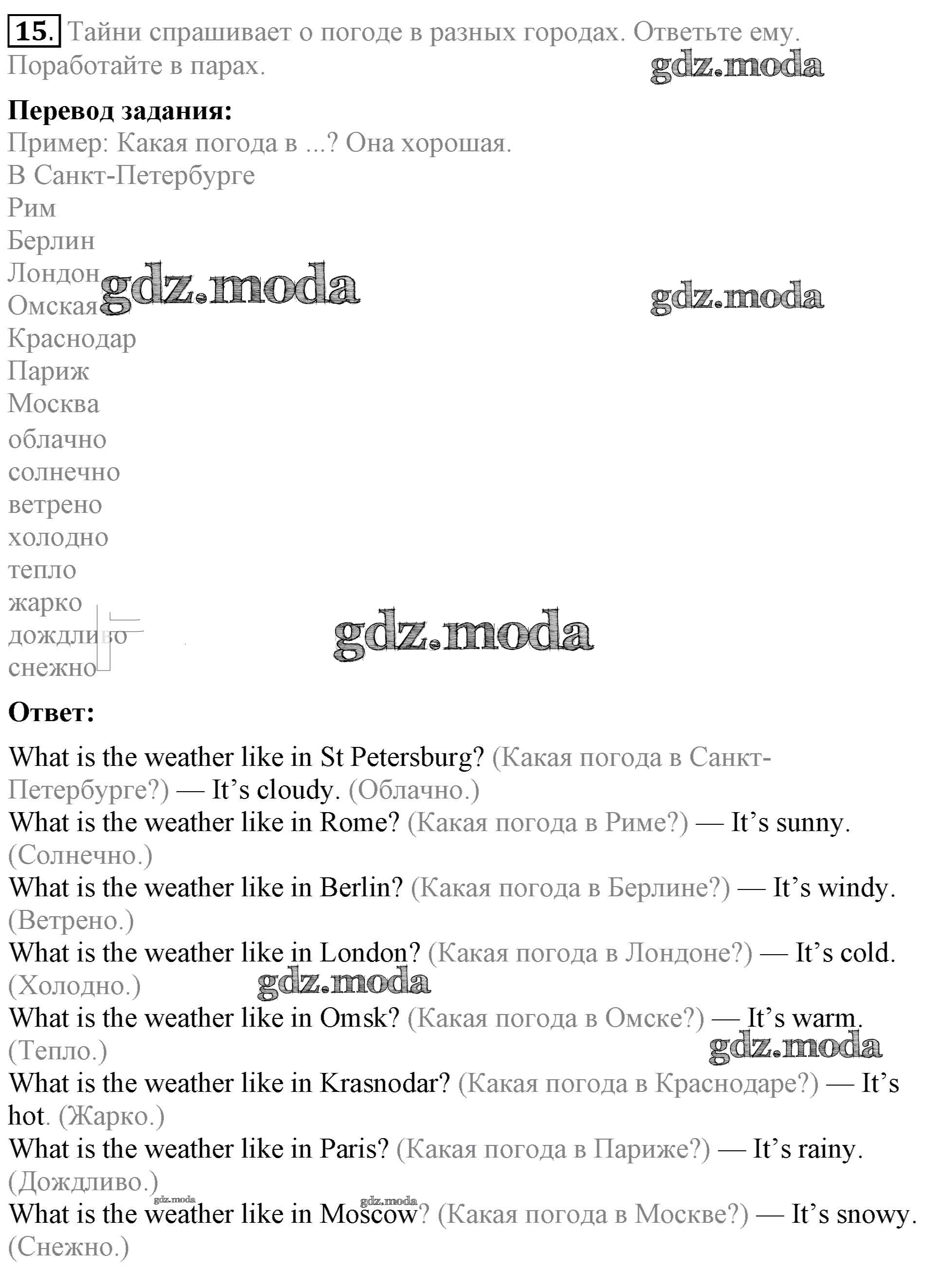 ОТВЕТ на задание № 15 Учебник по Английскому языку 4 класс Биболетова Enjoy English