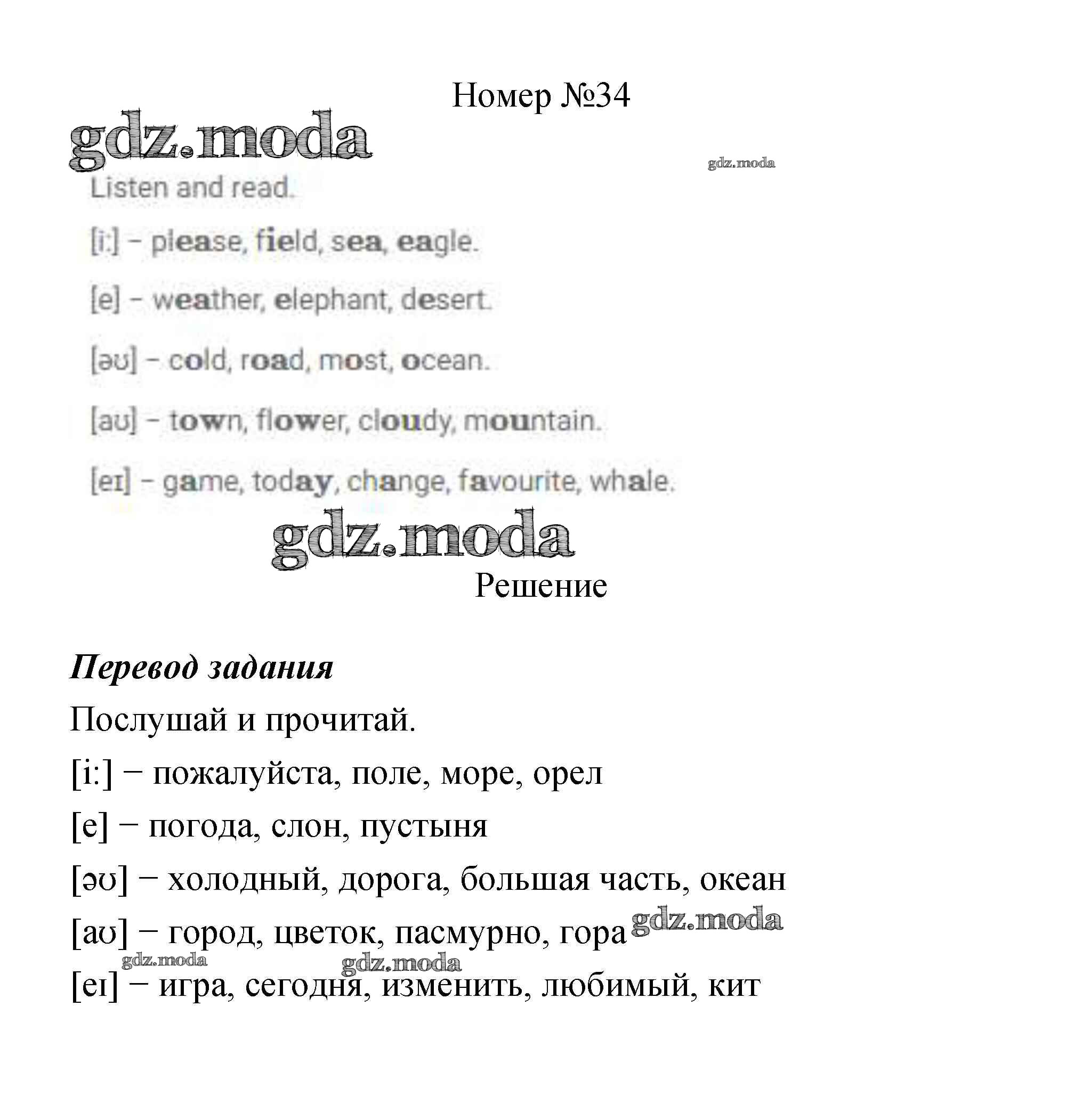 ОТВЕТ на задание № 34 Учебник по Английскому языку 4 класс Биболетова Enjoy English