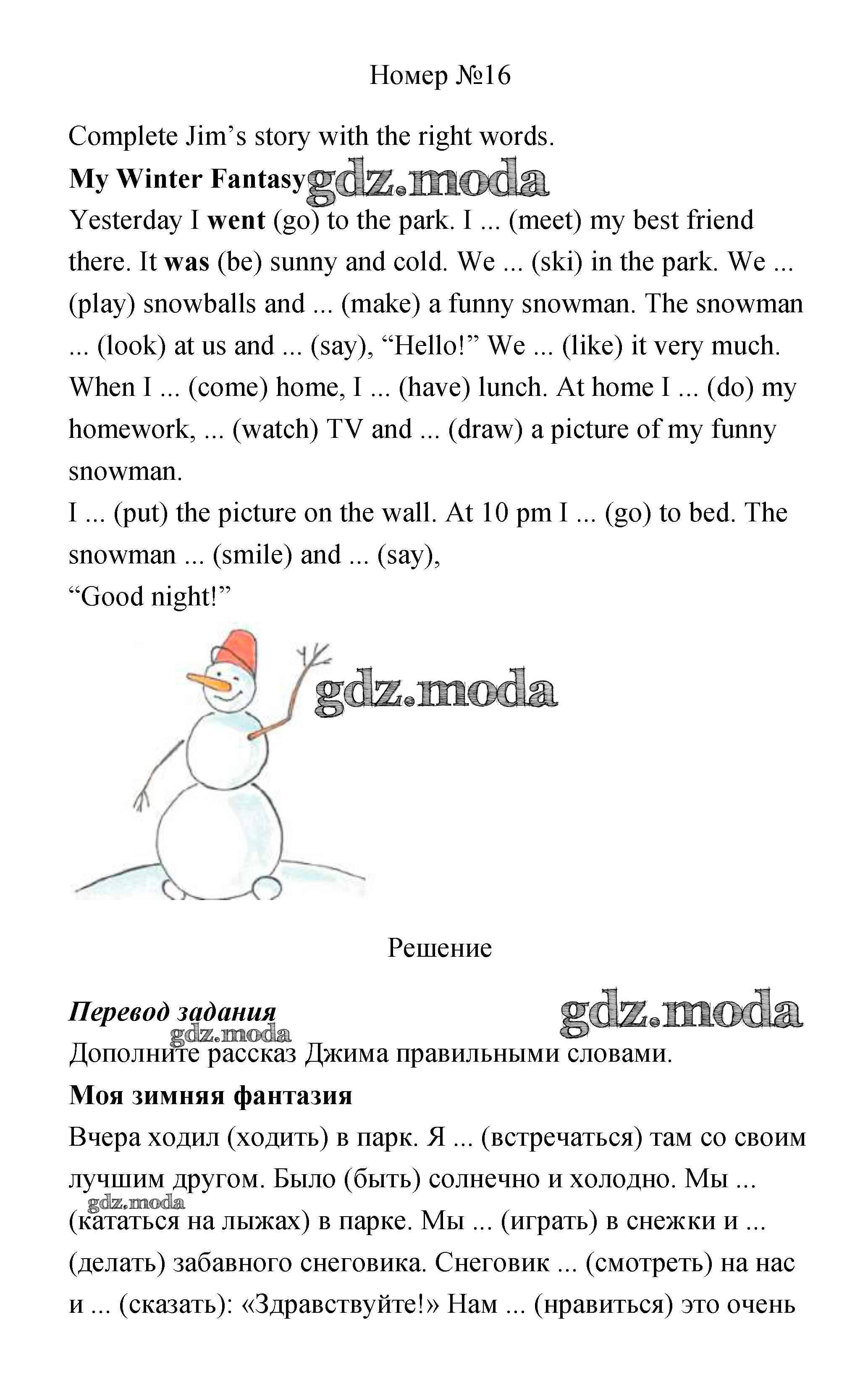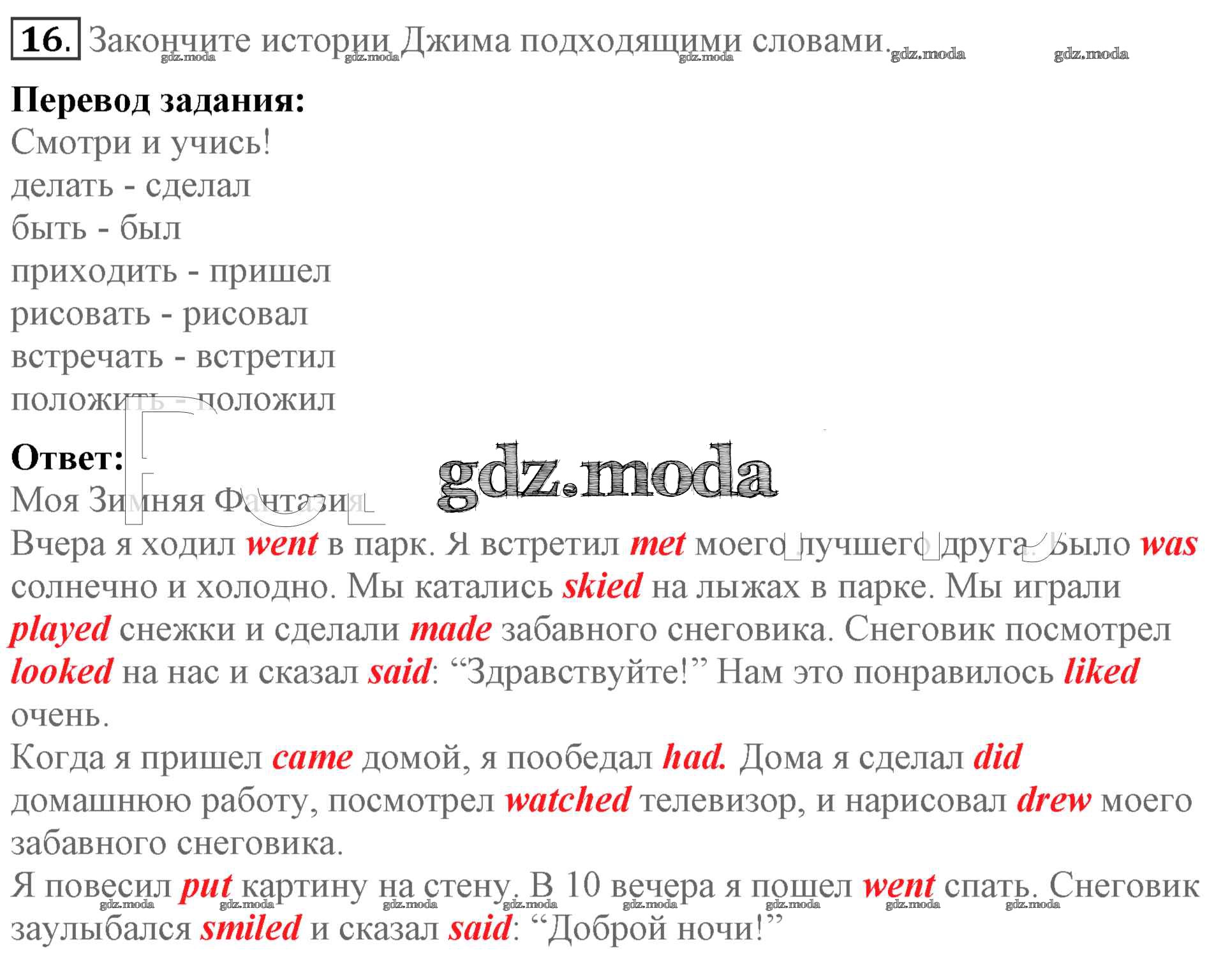 ОТВЕТ на задание № 16 Учебник по Английскому языку 4 класс Биболетова Enjoy English