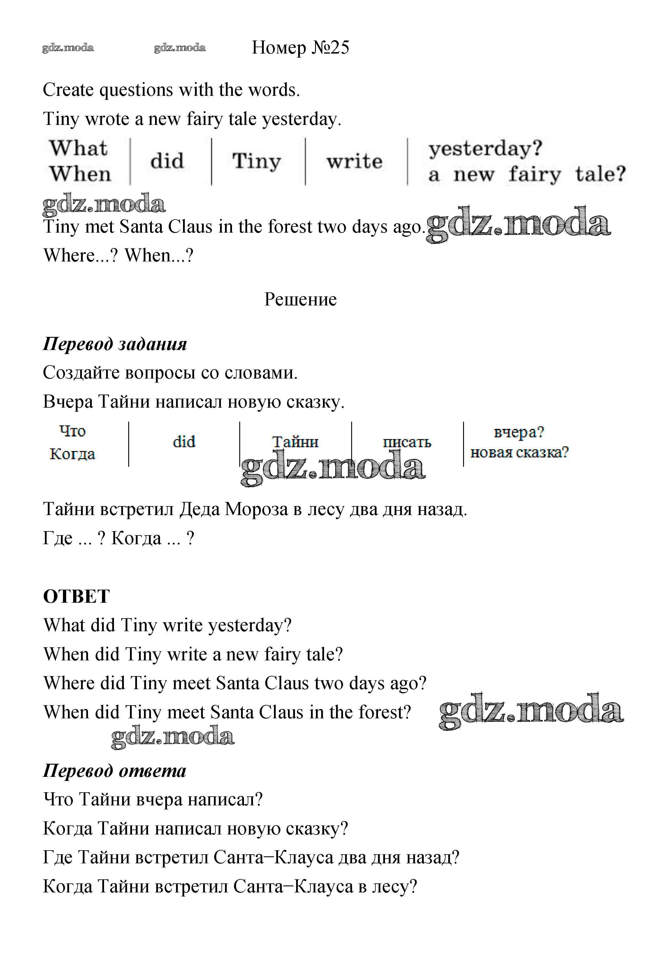 ОТВЕТ на задание № 25 Учебник по Английскому языку 4 класс Биболетова Enjoy English